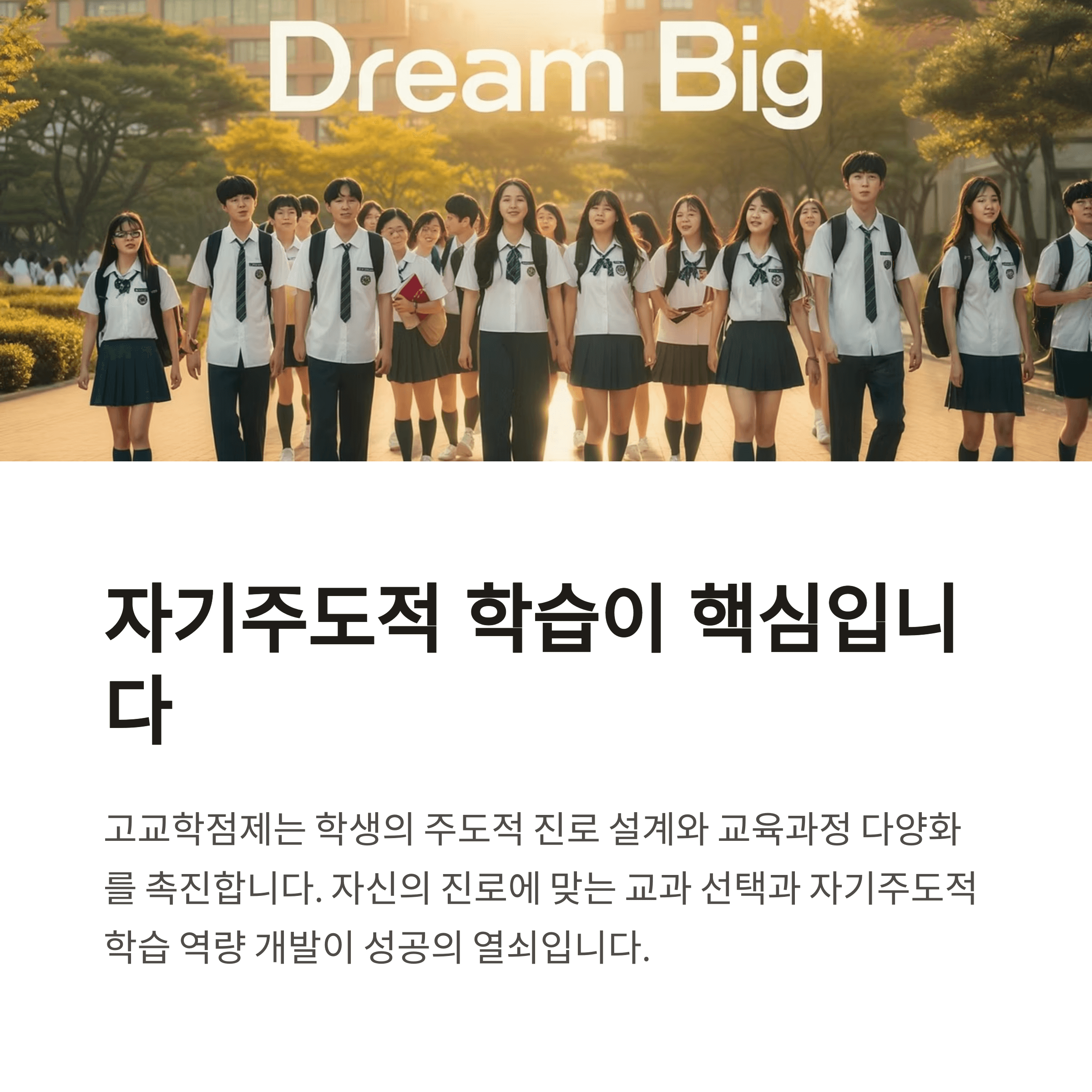 고교학점제는 학생이 주도적으로 자신의 학습을 설계할 수 있는 좋은 기회예요. 중학생인 지금부터 진로를 고민하고, 다양한 경험을 통해 자신에게 맞는 길을 찾아보세요. 그렇게 하면 고등학교 생활도, 대학 입시도 더 즐겁고 의미 있게 보낼 수 있을 거예요.