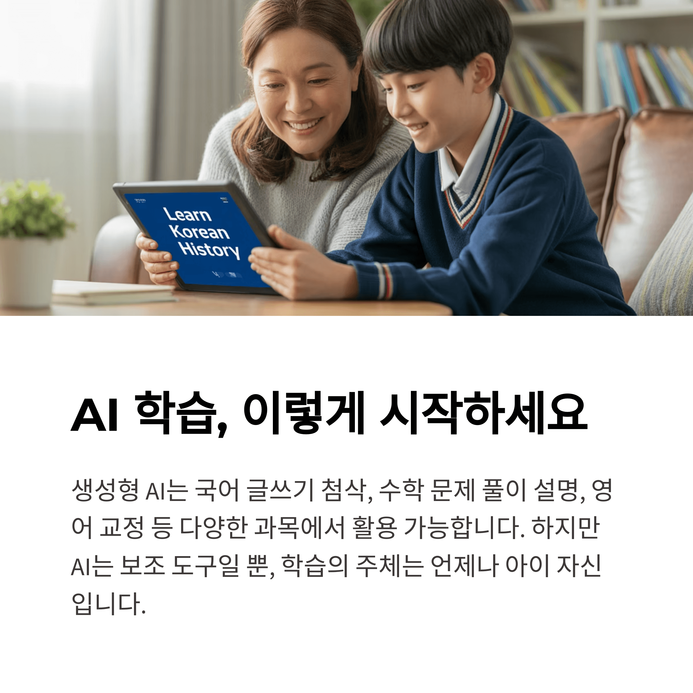 AI는 '도우미'일뿐 '대신' 해주는 도구가 아니며, 학습 과정을 함께하고 이해를 도와주는 방향으로 사용해야 합니다. 숙제를 대신하는 것이 아니라, 이해하고 생각하게 만드는 것이 핵심입니다.