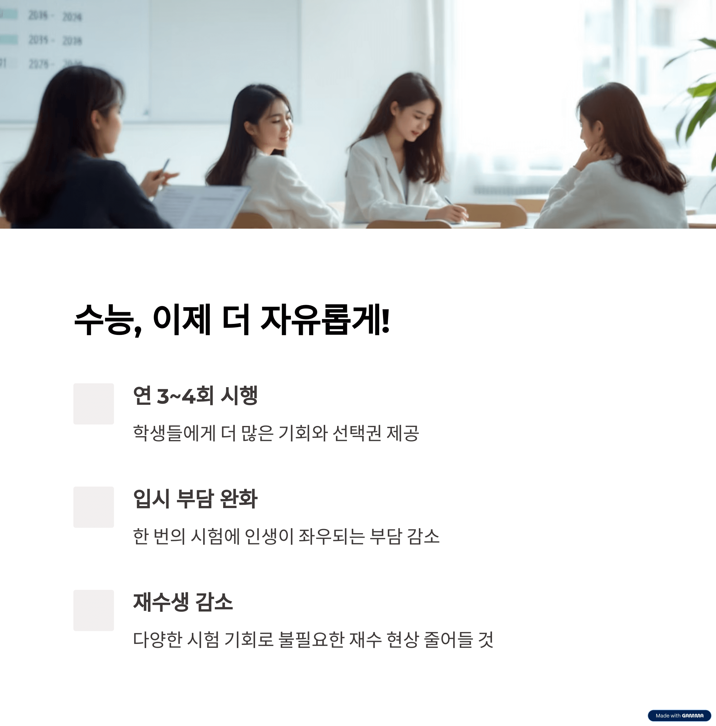 4. 수능 시험 개편: 연 3~4회 시행 및 자격시험화