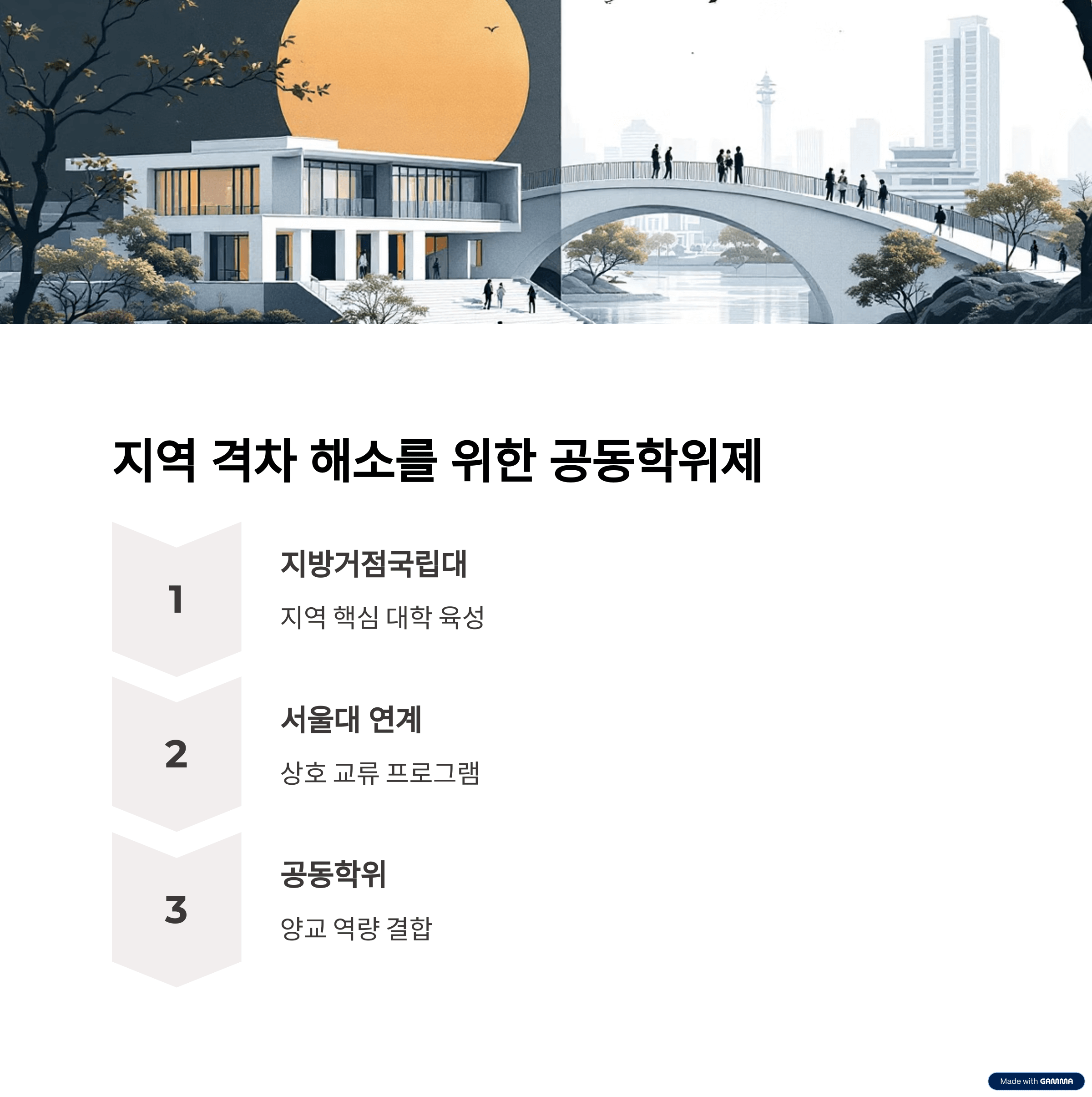 지방 거점 국립대와 서울대가 협력하여 공동으로 지도 교수, 전공 수업, 연구 인프라를 공유하고, 학생들에게 공동 졸업장을 수여하는 공동학위제 활성화 계획도 포함되었습니다. 이는 대학 간 인프라 격차를 완화하고, 지역 소멸 문제 및 첨단 산업 인력난 해소에 기여할 수 있을 것으로 기대됩니다