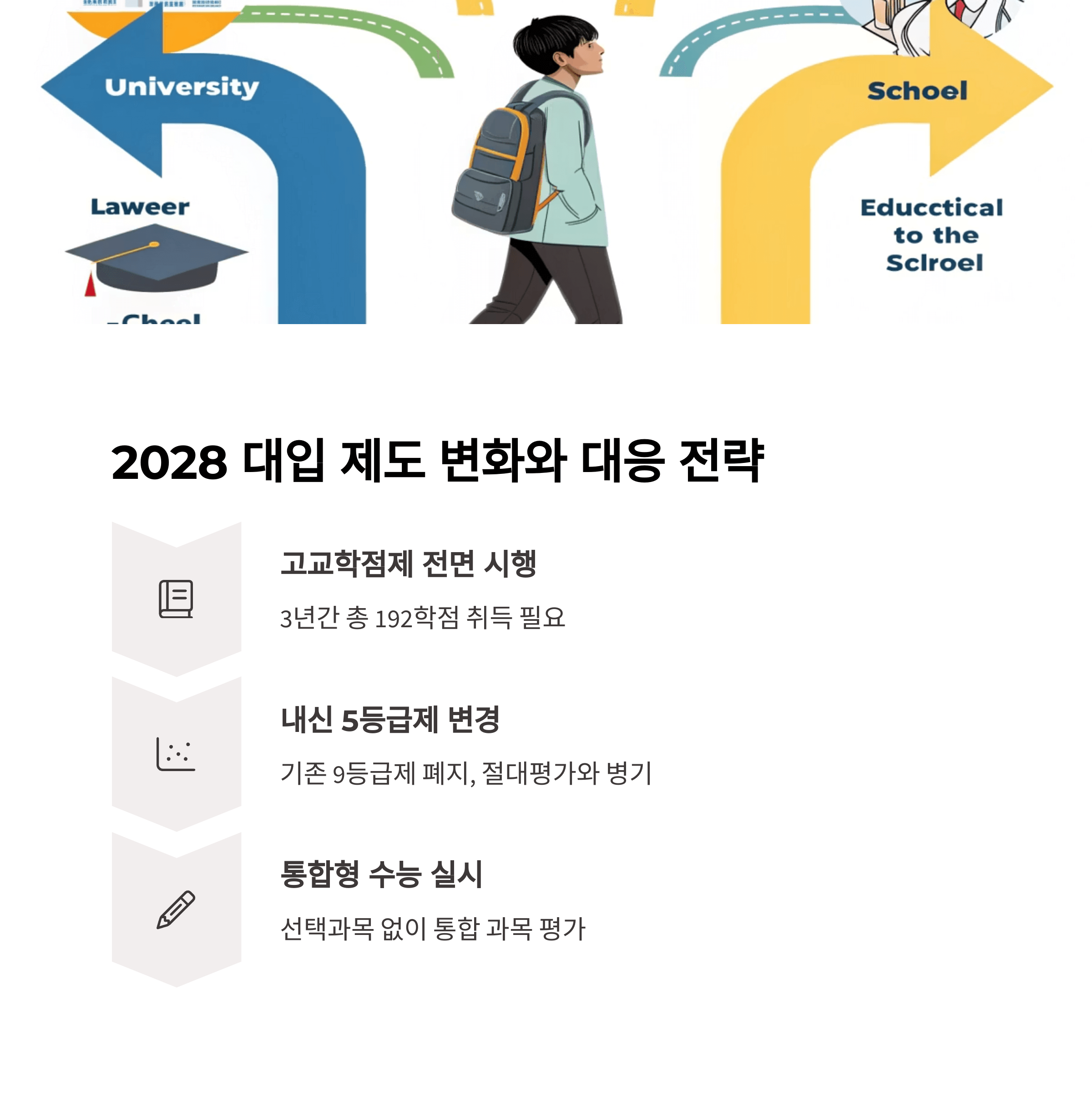 2028학년도 대입에서는 고교학점제 전면 시행과 함께 내신 및 수능 체계에 큰 변화가 있습니다. 이에 따른 전략적 대응이 필요합니다.
