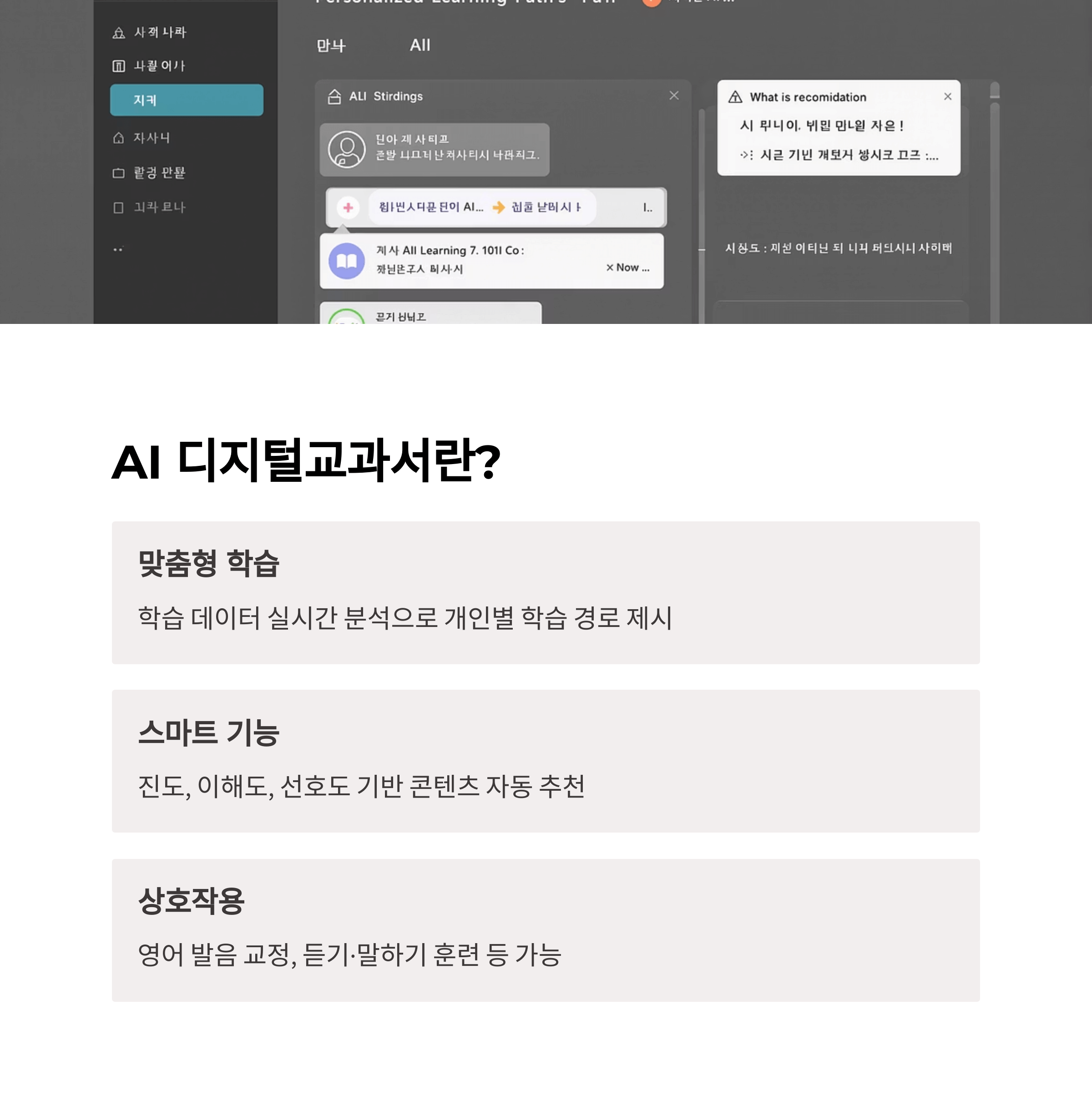 - AI가 학습 이력을 분석하여 수준별 자료와 문제 제공